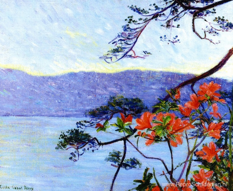 Wij bieden u een ambachtelijke reproductie op doek van het beroemde schilderij 'Suruga Bay, Azalea's ' van Lilla Cabot Perry, afkomstig uit het Reproductiemuseum.