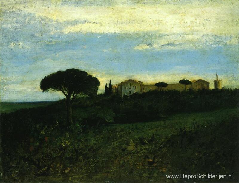 Wij bieden u een ambachtelijke reproductie op doek van het beroemde schilderij 'Uitzicht op La Tour de Farges' van Gustave Courbet, afkomstig uit het Reproductiemuseum.