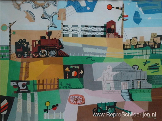 Wij bieden u een ambachtelijke reproductie op doek van het beroemde schilderij 'Zonder titel (Spoorweg)' van Jean David, afkomstig uit het Reproductiemuseum.