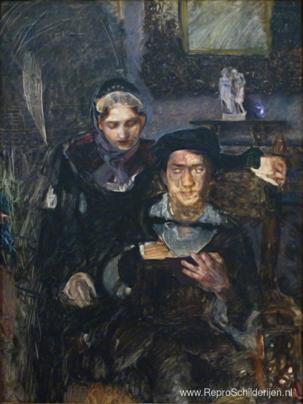 Wij bieden u een ambachtelijke reproductie op doek van het beroemde schilderij 'Hamlet en Ophelia' van Mikhail Vrubel, afkomstig uit het Reproductiemuseum.