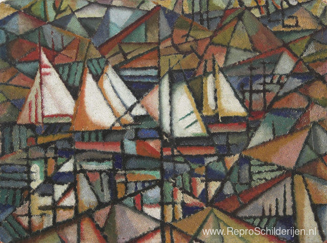 Wij bieden u een ambachtelijke reproductie op doek van het beroemde schilderij 'Zonder titel (boten)' van Amadeo de Souza-Cardoso, afkomstig uit het Reproductiemuseum.