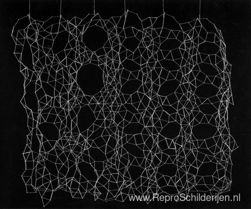 Wij bieden u een ambachtelijke reproductie op doek van het beroemde schilderij 'Reticularia' van Gego, afkomstig uit het Reproductiemuseum.