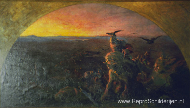 Wij bieden u een ambachtelijke reproductie op doek van het beroemde schilderij 'Avond van Kiev bogatyrs' van Nicholas Roerich, afkomstig uit het Reproductiemuseum.