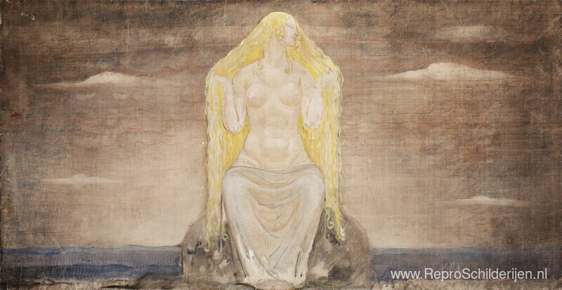 Wij bieden u een ambachtelijke reproductie op doek van het beroemde schilderij 'Freja ' van John Bauer, afkomstig uit het Reproductiemuseum.