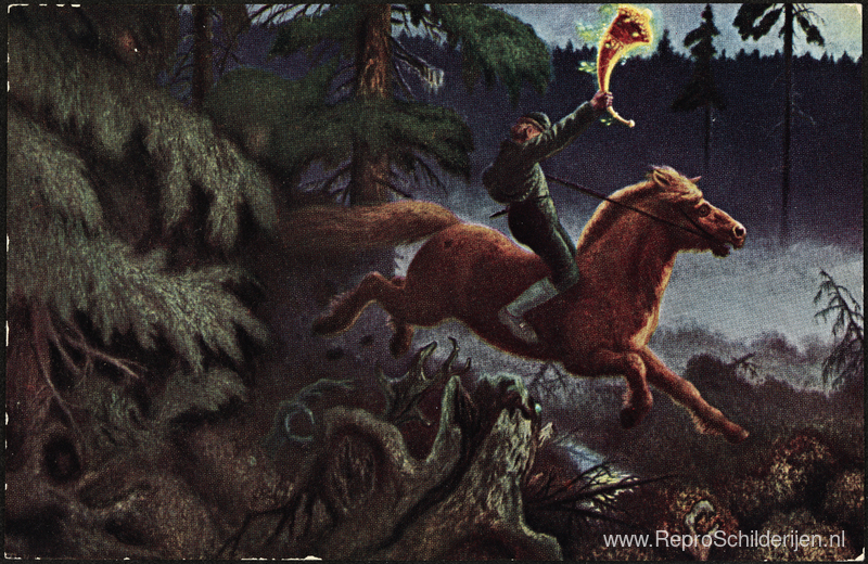 Wij bieden u een ambachtelijke reproductie op doek van het beroemde schilderij 'Gouden Hoorn' van Theodor Severin Kittelsen, afkomstig uit het Reproductiemuseum.