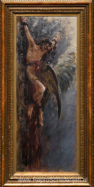 Wij bieden u een ambachtelijke reproductie op doek van het beroemde schilderij 'Prometheus' van Ilya Repin, afkomstig uit het Reproductiemuseum.