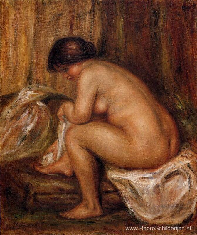 Wij bieden u een ambachtelijke reproductie op doek van het beroemde schilderij 'Na het baden' van Pierre-Auguste Renoir, afkomstig uit het Reproductiemuseum.