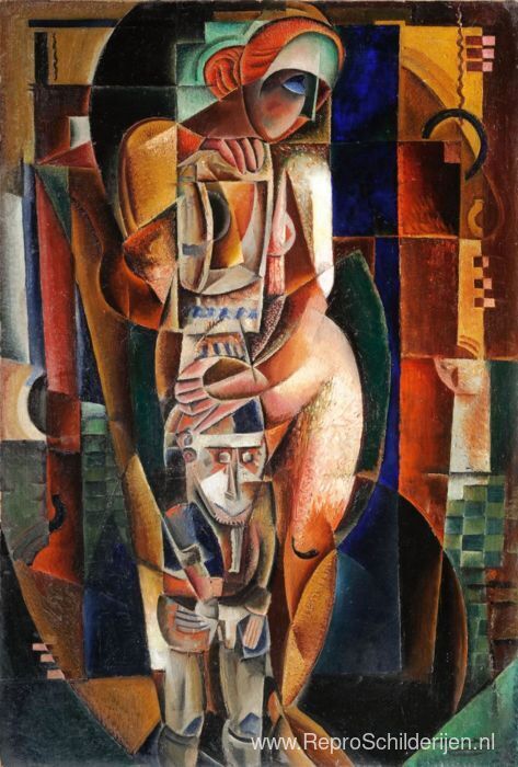 Wij bieden u een ambachtelijke reproductie op doek van het beroemde schilderij 'Naakt met idool' van M. H. Maxy, afkomstig uit het Reproductiemuseum.