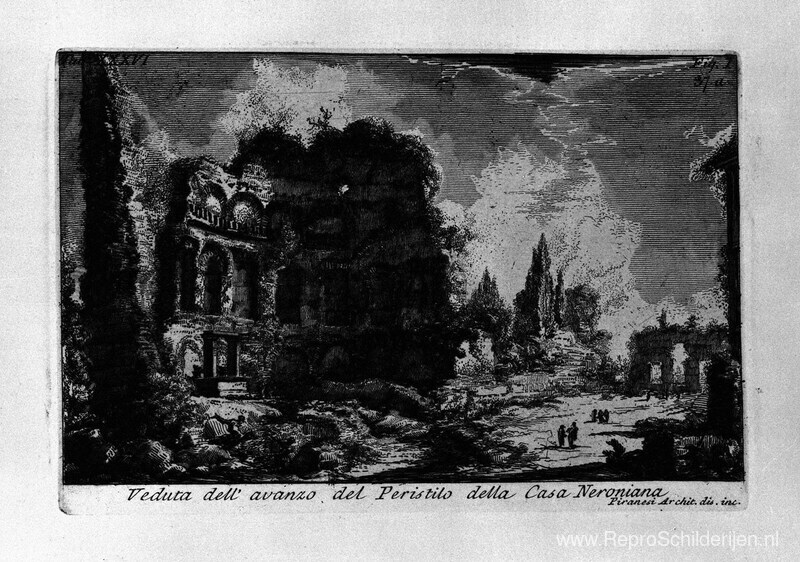 Wij bieden u een ambachtelijke reproductie op doek van het beroemde schilderij 'De Romeinse oudheden, t. 1, Plaat XXXVI. Veduta met ruïnes van h' van Giovanni Battista Piranesi, afkomstig uit het Reproductiemuseum.