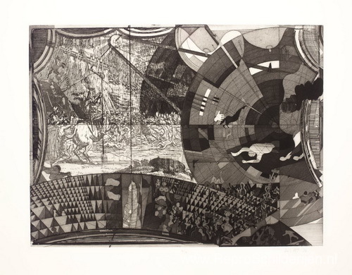 Wij bieden u een ambachtelijke reproductie op doek van het beroemde schilderij 'Groot Theater' van Dieter Roth, afkomstig uit het Reproductiemuseum.