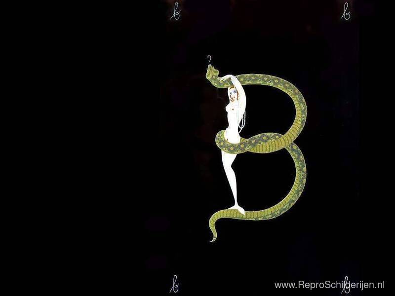 Wij bieden u een ambachtelijke reproductie op doek van het beroemde schilderij 'Alfabet B' van Erte, afkomstig uit het Reproductiemuseum.