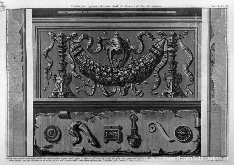 Wij bieden u een ambachtelijke reproductie op doek van het beroemde schilderij 'Demonstratie in grote delen van de pronaos van het Pantheon en d' van Giovanni Battista Piranesi, afkomstig uit het Reproductiemuseum.