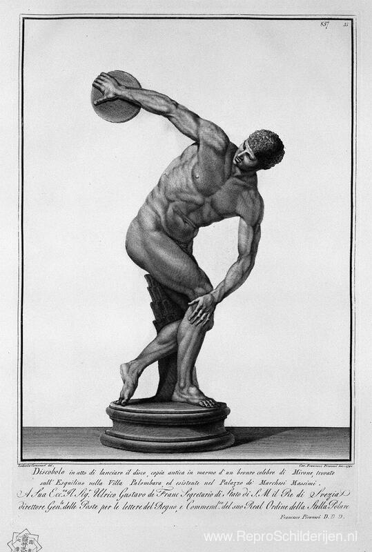 Wij bieden u een ambachtelijke reproductie op doek van het beroemde schilderij 'Discuswerper' van Giovanni Battista Piranesi, afkomstig uit het Reproductiemuseum.