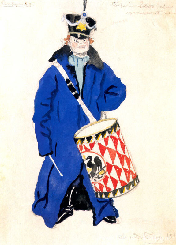 Wij bieden u een ambachtelijke reproductie op doek van het beroemde schilderij 'Drummer van een poppenspel' van Alexandre Benois, afkomstig uit het Reproductiemuseum.