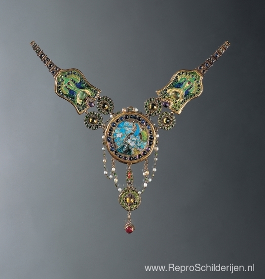 Wij bieden u een ambachtelijke reproductie op doek van het beroemde schilderij 'Halsketting ' van Louis Comfort Tiffany, afkomstig uit het Reproductiemuseum.