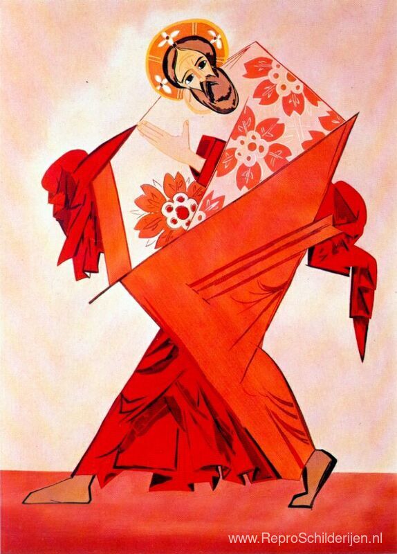 Wij bieden u een ambachtelijke reproductie op doek van het beroemde schilderij 'Liturgie, St. Andreas' van Natalia Goncharova, afkomstig uit het Reproductiemuseum.