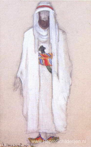 Wij bieden u een ambachtelijke reproductie op doek van het beroemde schilderij 'Oud Arabisch' van Nicholas Roerich, afkomstig uit het Reproductiemuseum.