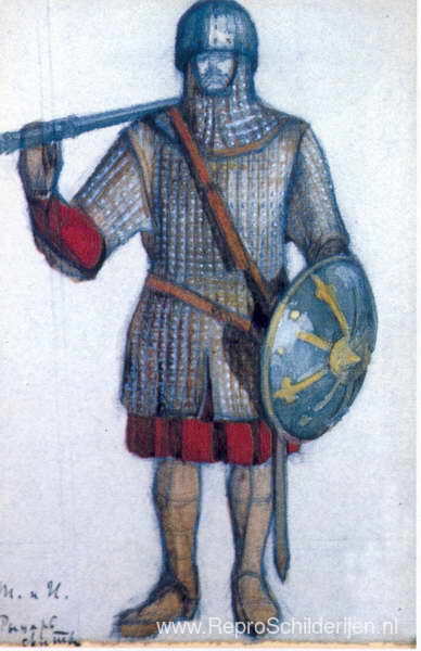 Wij bieden u een ambachtelijke reproductie op doek van het beroemde schilderij 'Ridder van de entourage' van Nicholas Roerich, afkomstig uit het Reproductiemuseum.