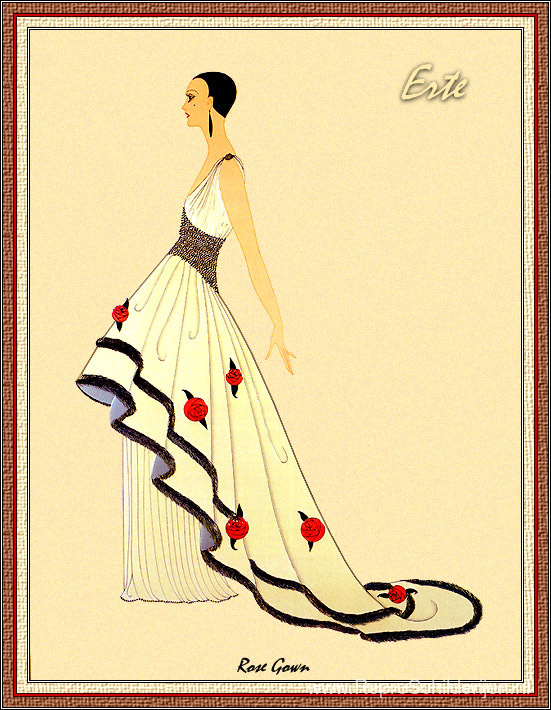 Wij bieden u een ambachtelijke reproductie op doek van het beroemde schilderij 'Roze jurk' van Erte, afkomstig uit het Reproductiemuseum.