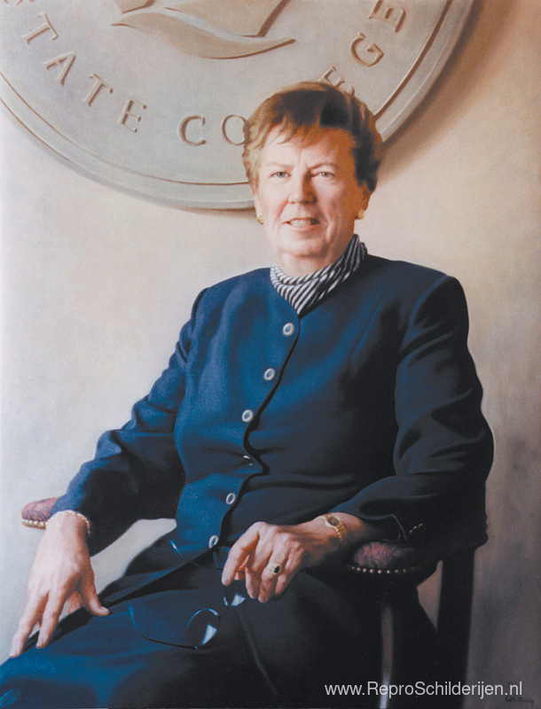 Wij bieden u een ambachtelijke reproductie op doek van het beroemde schilderij 'Dr. Nancy Harrington' van Richard Whitney, afkomstig uit het Reproductiemuseum.
