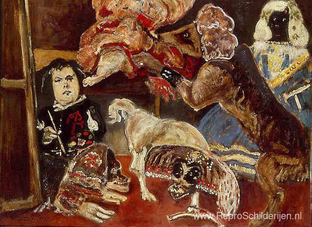 Wij bieden u een ambachtelijke reproductie op doek van het beroemde schilderij 'Francisco Lezcano en su groter' van Alberto Gironella, afkomstig uit het Reproductiemuseum.