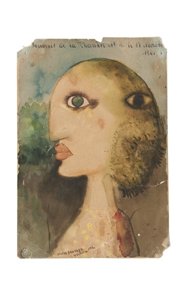 Wij bieden u een ambachtelijke reproductie op doek van het beroemde schilderij 'Gezicht' van Victor Brauner, afkomstig uit het Reproductiemuseum.