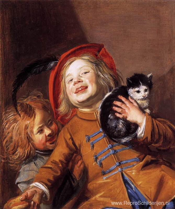 Wij bieden u een ambachtelijke reproductie op doek van het beroemde schilderij 'Lachende kinderen met een kat' van Judith Leyster, afkomstig uit het Reproductiemuseum.