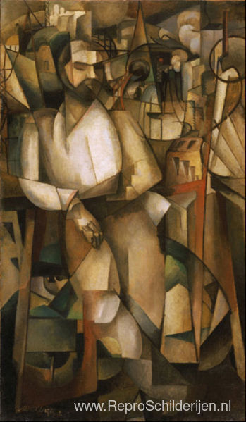 Wij bieden u een ambachtelijke reproductie op doek van het beroemde schilderij 'Man op een balkon (portret van Dr. Théo Morinaud)' van Albert Gleizes, afkomstig uit het Reproductiemuseum.