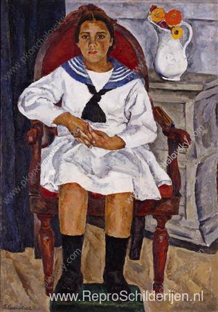 Wij bieden u een ambachtelijke reproductie op doek van het beroemde schilderij 'Natasja in een stoel' van Pyotr Konchalovsky, afkomstig uit het Reproductiemuseum.