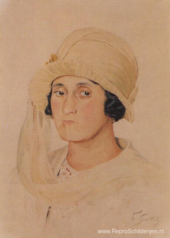 Wij bieden u een ambachtelijke reproductie op doek van het beroemde schilderij 'Portret van A.K. Kashparova' van Boris Kustodiev, afkomstig uit het Reproductiemuseum.