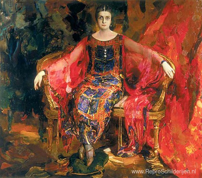 Wij bieden u een ambachtelijke reproductie op doek van het beroemde schilderij 'Portret van Alexandra Balashova' van Filipp Malyavin, afkomstig uit het Reproductiemuseum.