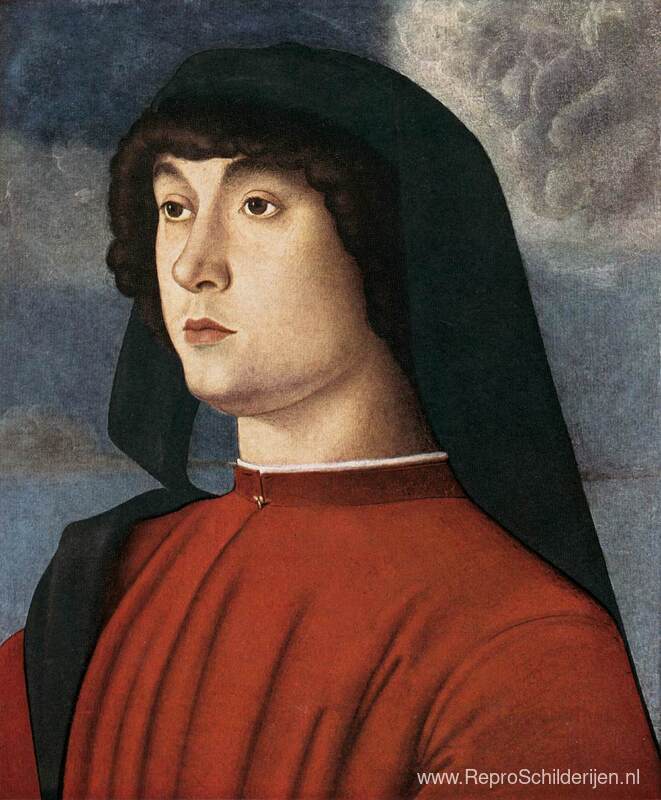 Wij bieden u een ambachtelijke reproductie op doek van het beroemde schilderij 'Portret van een jonge man in het rood' van Giovanni Bellini, afkomstig uit het Reproductiemuseum.
