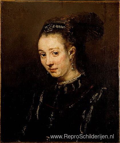 Wij bieden u een ambachtelijke reproductie op doek van het beroemde schilderij 'Portret van een jonge vrouw' van Rembrandt, afkomstig uit het Reproductiemuseum.