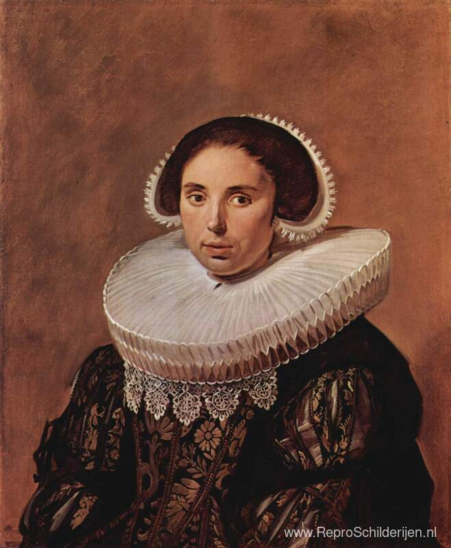 Wij bieden u een ambachtelijke reproductie op doek van het beroemde schilderij 'Portret van een vrouw, mogelijk Sara Wolphaerts van Diemen' van Frans Hals, afkomstig uit het Reproductiemuseum.