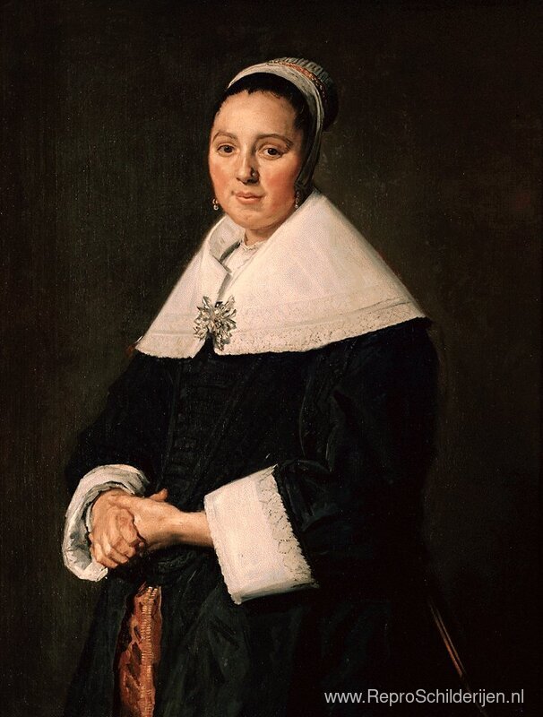 Wij bieden u een ambachtelijke reproductie op doek van het beroemde schilderij 'Portret van een vrouw' van Frans Hals, afkomstig uit het Reproductiemuseum.