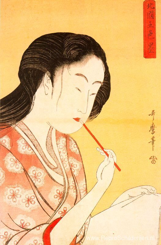 Wij bieden u een ambachtelijke reproductie op doek van het beroemde schilderij 'Portret van een vrouw' van Kitagawa Utamaro, afkomstig uit het Reproductiemuseum.