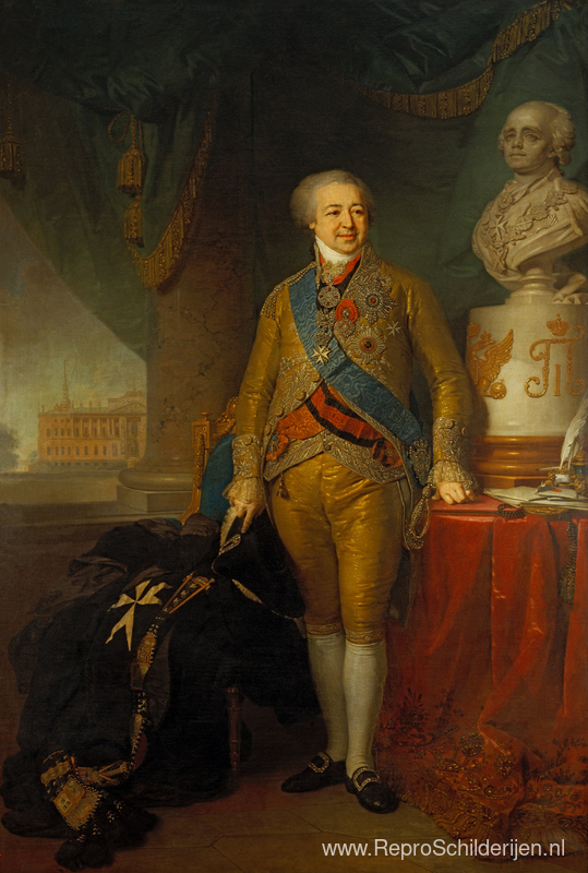 Wij bieden u een ambachtelijke reproductie op doek van het beroemde schilderij 'Portret van graaf Alexander Kurakin' van Vladimir Borovikovsky, afkomstig uit het Reproductiemuseum.