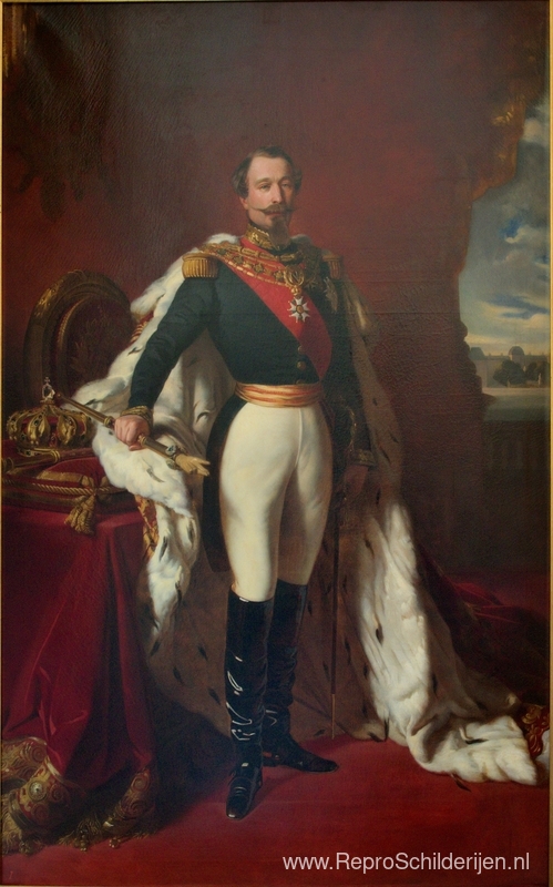 Wij bieden u een ambachtelijke reproductie op doek van het beroemde schilderij 'Portret van keizer Napoleon III ' van Franz Xaver Winterhalter, afkomstig uit het Reproductiemuseum.