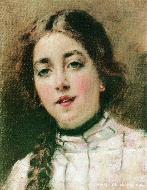 Wij bieden u een ambachtelijke reproductie op doek van het beroemde schilderij 'Portret van kunstenaarsdochter Olya' van Konstantin Makovsky, afkomstig uit het Reproductiemuseum.