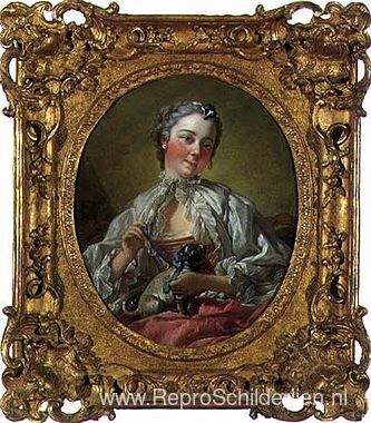 Wij bieden u een ambachtelijke reproductie op doek van het beroemde schilderij 'Portret van mevrouw Boucher' van Francois Boucher, afkomstig uit het Reproductiemuseum.