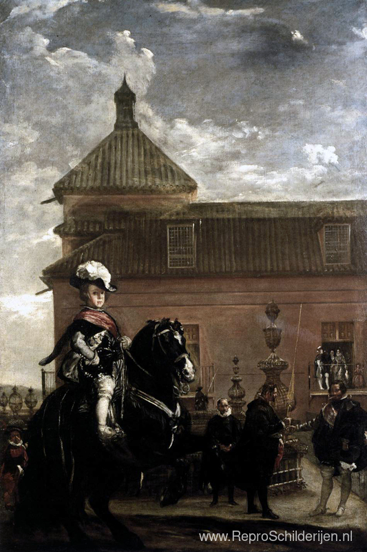 Wij bieden u een ambachtelijke reproductie op doek van het beroemde schilderij 'Prins Baltasar Carlos met de graaf-hertog van Olivares in de Roy' van Diego Velazquez, afkomstig uit het Reproductiemuseum.
