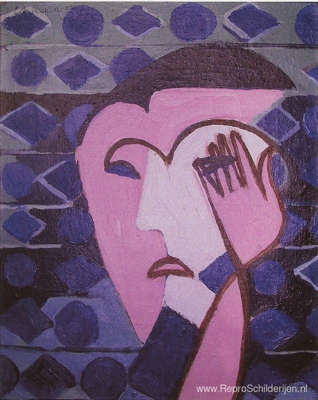 Wij bieden u een ambachtelijke reproductie op doek van het beroemde schilderij 'Triest vrouwelijk hoofd' van Ernst Ludwig Kirchner, afkomstig uit het Reproductiemuseum.
