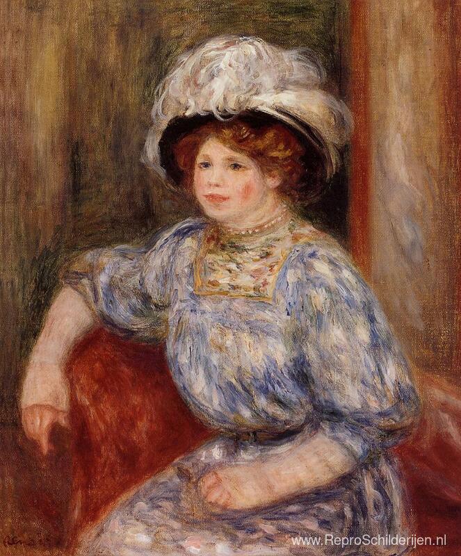 Wij bieden u een ambachtelijke reproductie op doek van het beroemde schilderij 'Vrouw in blauw' van Pierre-Auguste Renoir, afkomstig uit het Reproductiemuseum.