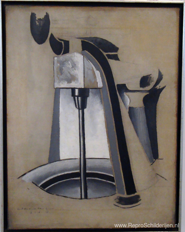 Wij bieden u een ambachtelijke reproductie op doek van het beroemde schilderij 'Schilderij VII' van Morton Shamberg, afkomstig uit het Reproductiemuseum.