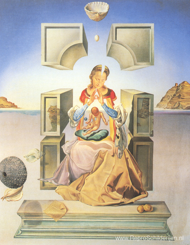 Wij bieden u een ambachtelijke reproductie op doek van het beroemde schilderij 'De eerste studie voor de Madonna van Port Lligat' van Salvador Dali, afkomstig uit het Reproductiemuseum.