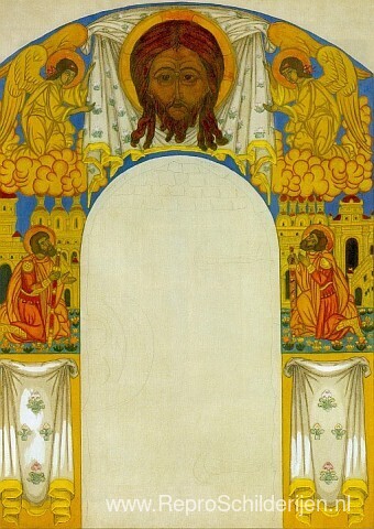 Wij bieden u een ambachtelijke reproductie op doek van het beroemde schilderij 'De Verlosser boven de deur' van Nicholas Roerich, afkomstig uit het Reproductiemuseum.