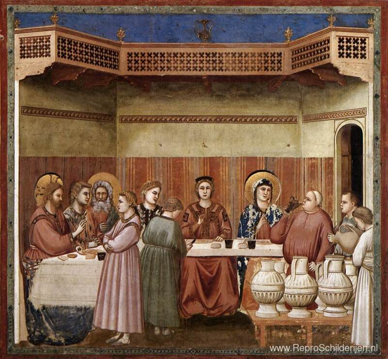 Wij bieden u een ambachtelijke reproductie op doek van het beroemde schilderij 'Huwelijk te Kana' van Giotto, afkomstig uit het Reproductiemuseum.