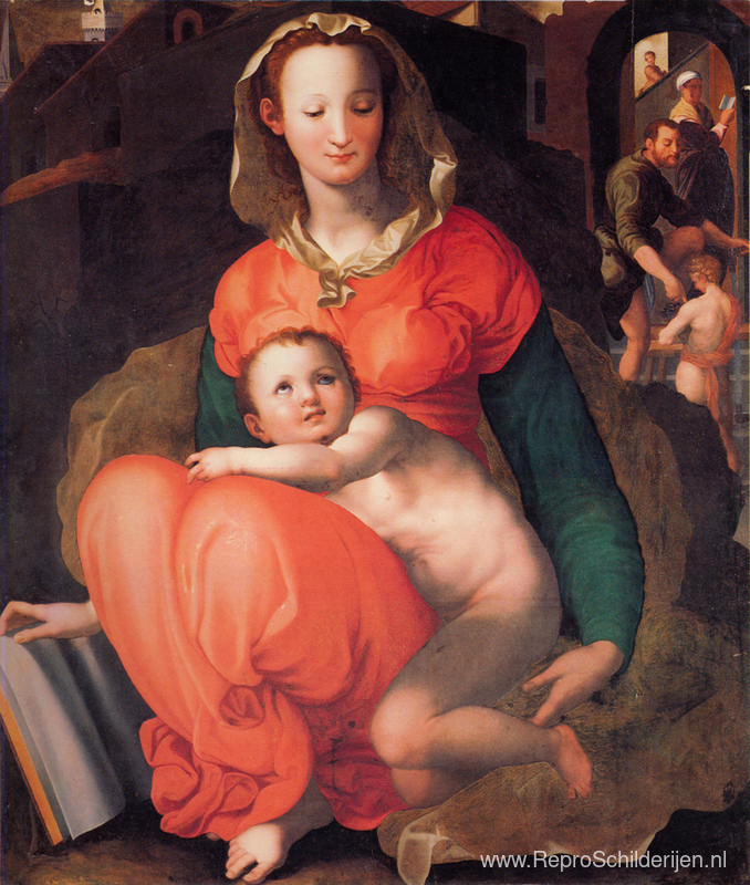 Wij bieden u een ambachtelijke reproductie op doek van het beroemde schilderij 'Madonna en Kind' van Jacopo Pontormo, afkomstig uit het Reproductiemuseum.