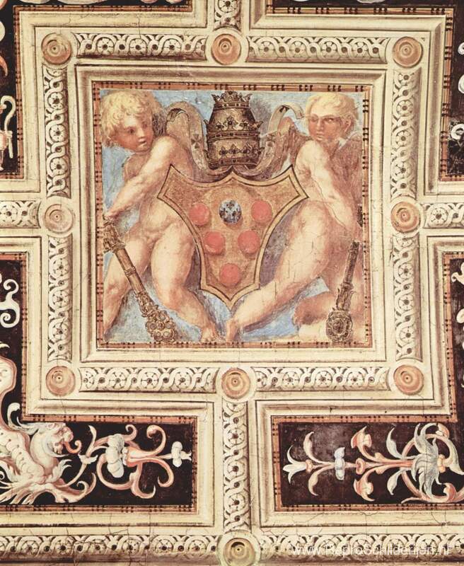 Wij bieden u een ambachtelijke reproductie op doek van het beroemde schilderij 'Tafereel met engeltjes op het pauselijke wapen' van Jacopo Pontormo, afkomstig uit het Reproductiemuseum.