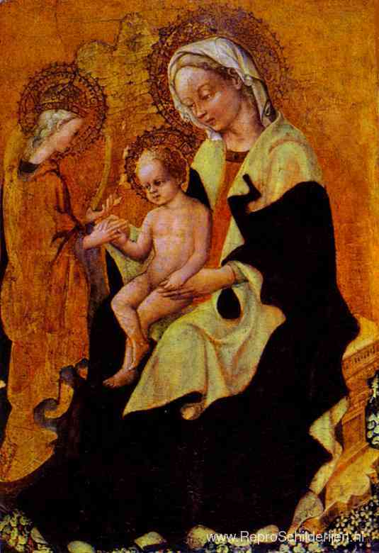 Wij bieden u een ambachtelijke reproductie op doek van het beroemde schilderij 'Verloving van Catharina van Alexandrië' van Gentile da Fabriano, afkomstig uit het Reproductiemuseum.